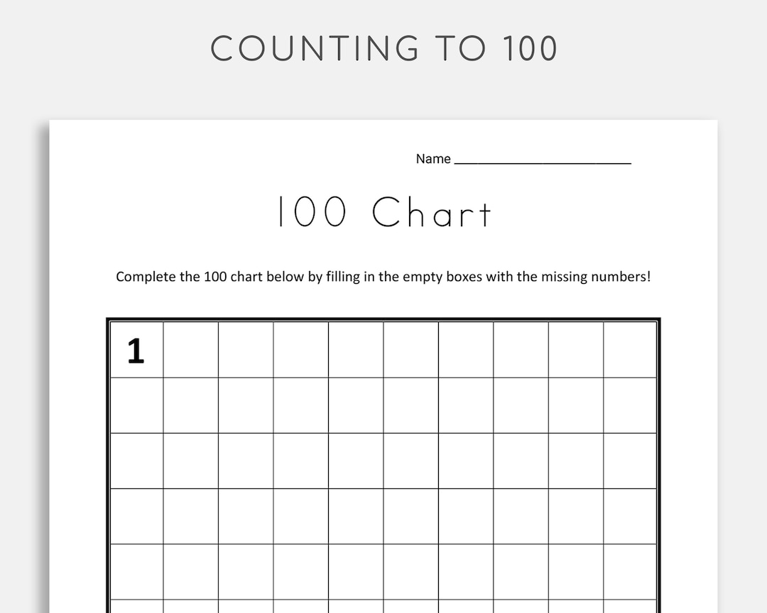 Missing Numbers: Counting to 100 | Worksheet | Education.com Practice counting to 100 with this missing numbers chart! Children will fill in the missing numbers to complete a hundreds counting chart in this number sense worksheet. Designed for first graders, this math worksheet offers a fun visual model for learners as they practice counting, identifying, and writing one- and two-digit numbers up to 100.